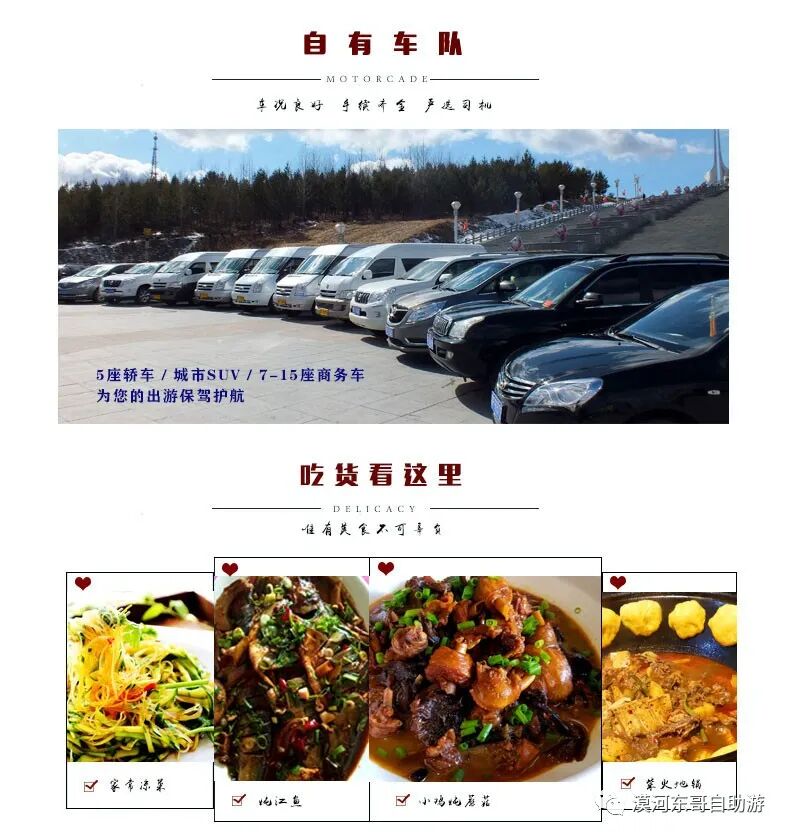 又到了一年一度的毕业季, 你是否在计划一场难忘的毕业旅行? 约上三五好友,一起追逐日出、仰望星空、 翻山越海、肆意撒欢... 去没有到达过的远方、了解没有接触的文化、 听没听过的故事、过没有过过的生活! 漫长的紧张会战,高考终于结束,那就不要沉浸在各种消极紧张中,来一场旅游好好放松一下吧! 旅游目的 1、散心,辛苦12载,需要释放一下; 2、增长见识,读万卷书,还要行万里路。 漠河3日原生态游 Day1、漠河-九曲十八弯-白桦林-二十八站-黑龙江第一湾-乌苏里浅滩- Day2、北红村-原始森林-鄂温克驯鹿园-北极村(村内景点); Day3、北极村-观音山-胭脂沟-漠河(城内景点)。 游览关键词:乡村、森林、界江、星空、找北、驯鹿、遥远、神秘…… 呼伦贝尔环线5日游 D1、海拉尔—反法西斯教育基地-两河圣山-金帐汗-天下第一曲—额尔古纳【根河湿地】-三河-白桦林-上护林-下护林-恩和; D2、恩和-哈乌尔河- D3、临江一室韦-水墨—边防线-九卡—八卡—七卡--六卡--五卡—黑山头 ; D4、黑山头—胡列也吐—八大关—33湿地-186彩带河-呼伦湖—满洲里; D5、满洲里-巴尔虎草原-穿越呼伦贝尔草原-呼和诺尔-海拉尔。 漠河呼伦贝尔8日生态游 1日:漠河-九曲十八弯-白桦林-采摘蓝莓-第一湾-乌苏里浅滩-龙江第一湾-北红村; 2日: 3日:北极村-观音山-胭脂沟-采摘蘑菇-穿越原始森林-满归-根河; 4日:根河-驯鹿部落--莫尔道嘎-太平屯-老鹰嘴-住临江; 5日:临江-俄罗斯后裔家庭-挤牛奶-室韦-9卡8卡-恩和; 6日:恩和-白桦林-根河湿地-黑山头-骑马-186彩带河或黑山头(住蒙古包); 7日:边境线-呼也列吐湖-呼伦湖-国门-套娃广场 住满洲里; 8日:满洲里--巴尔虎-穿越草原-金帐汗-天下第一曲-海拉尔。 呼伦贝尔+阿尔山环线9日游 1日:海拉尔-金帐汗-莫日格勒河-额尔古纳 住额尔古纳 2日:额尔古纳-根河湿地-鄂伦春驯鹿部落- 根河 住根河 3日:根河-穿越原始森林-莫尔道嘎 住莫尔道嘎 4日:莫尔道嘎(可加奇乾)-太平屯-老鹰嘴-临江-室韦 住室韦 5日:室韦-9.8卡-恩和7卡-5卡-黑山头 住黑山头 6日:186彩带河-33湿地-边境线-巴尔虎-国门-套娃广场-满洲里 住满洲里 7日:满洲里-呼伦湖-穿越呼伦贝尔大草原-甘珠尔庙-西旗-阿尔山 住阿尔山 8日:阿尔山市-阿尔山森林公园 住兴安林场 9日:兴安林场-玫瑰峰-七仙湖-巴彦呼硕-海拉尔 漠河-黑河-五大连池7日游 1日:漠河(北极星广场、五.六火灾纪念馆、松苑原始森林公园)-观音山-胭脂沟-北极村(村内景点,冬季圣诞村有来自芬兰的圣诞老人、可滑雪、体验冰雪娱乐项目)【住北极村】; 2日:北极村-驯鹿苑-黑龙江第一湾-乌苏里浅滩-北红村【住北红村】; 3日:北红村-25站-十八站-吴八老岛-画山风景区-百年樟子松林-呼玛北山--呼玛【住呼玛】; 4日:呼玛-界碑-鹿鼎山-八十里大江湾-中俄边境线-黑河【住黑河】; 5日:黑河-瑷珲古城-瑷珲博物馆-锦河农场(闯关东摄影基地)-黑河步行街、国际大岛-逊克(玛瑙之乡)【住逊克】; 6日:逊克-五大连池【住五大连池】; 7日:五大连池-药泉山-老黑山-龙门石寨-地质博物馆,送站。 游览关键词:最北、乡村、界江、原始森林、异国风情、红色景区、古驿站、玛瑙之乡、火山地貌、采摘蓝莓…… 写一封信寄给流年 毕业了,在这个奇妙的夏天! 漠河-爱情小镇-五大连池6日游 1日:漠河(北极星广场、五.六火灾纪念馆、松苑公园)-观音山-胭脂沟-北极村(村内景点,冬季圣诞村可滑雪)【住北极村】; 2日:北极村-驯鹿苑-北红村,【住北红村农家院】; 3日:北红村-原始森林风光-塔河【住塔河】; 4日:塔河-爱情小镇新林-加格达奇【住加格达奇】; 5日:加格达奇-五大连池(南北药泉、老黑山、火烧山、火山堰塞湖、温泊)【住五大连池】; 6日:五大连池-扎龙自然保护区-齐齐哈尔,结束行程。 未来遥远的没有形状 我们单纯的没有烦恼 再见了 偷偷传过的小纸条…… ——致我们终将逝去的青春! 建议包车出游,自由自在,人多均摊车费,节省花销! 快和最好的朋友策划一次毕业旅行吧! 长按二维码 扫码关注我们 |